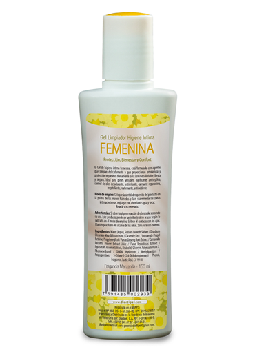 El gel de higiene íntima femenina, esta formulado con agentes que limpian delicadamente y que proporcionan emoliencia y protección requerida diariamente para senstirse saludable, fresca y segura. Ideal para pieles sensible, purificante, antiséptico, control de olor, desodorante, antiirritante, calmante reparadora, reepiteliante, reafirmante, antioxidante.