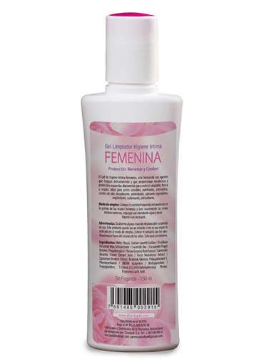 El gel de higiene íntima femenina, esta formulado con agentes que limpian delicadamente y que proporcionan emoliencia y protección requerida diariamente para senstirse saludable, fresca y segura. Ideal para pieles sensible, purificante, antiséptico, control de olor, desodorante, antiirritante, calmante reparadora, reepiteliante, reafirmante, antioxidante.